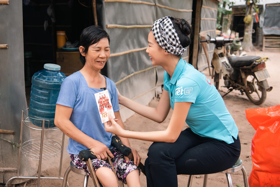 Mang đến Tây Ninh với 200 phần quà Tết cùng phong bao lì xì trị giá 500.000 VNĐ, Hoa hậu Bảo Ngọc đã phần nào giúp bà con được đón một mùa Tết ấm no và tràn ngập hạnh phúc.