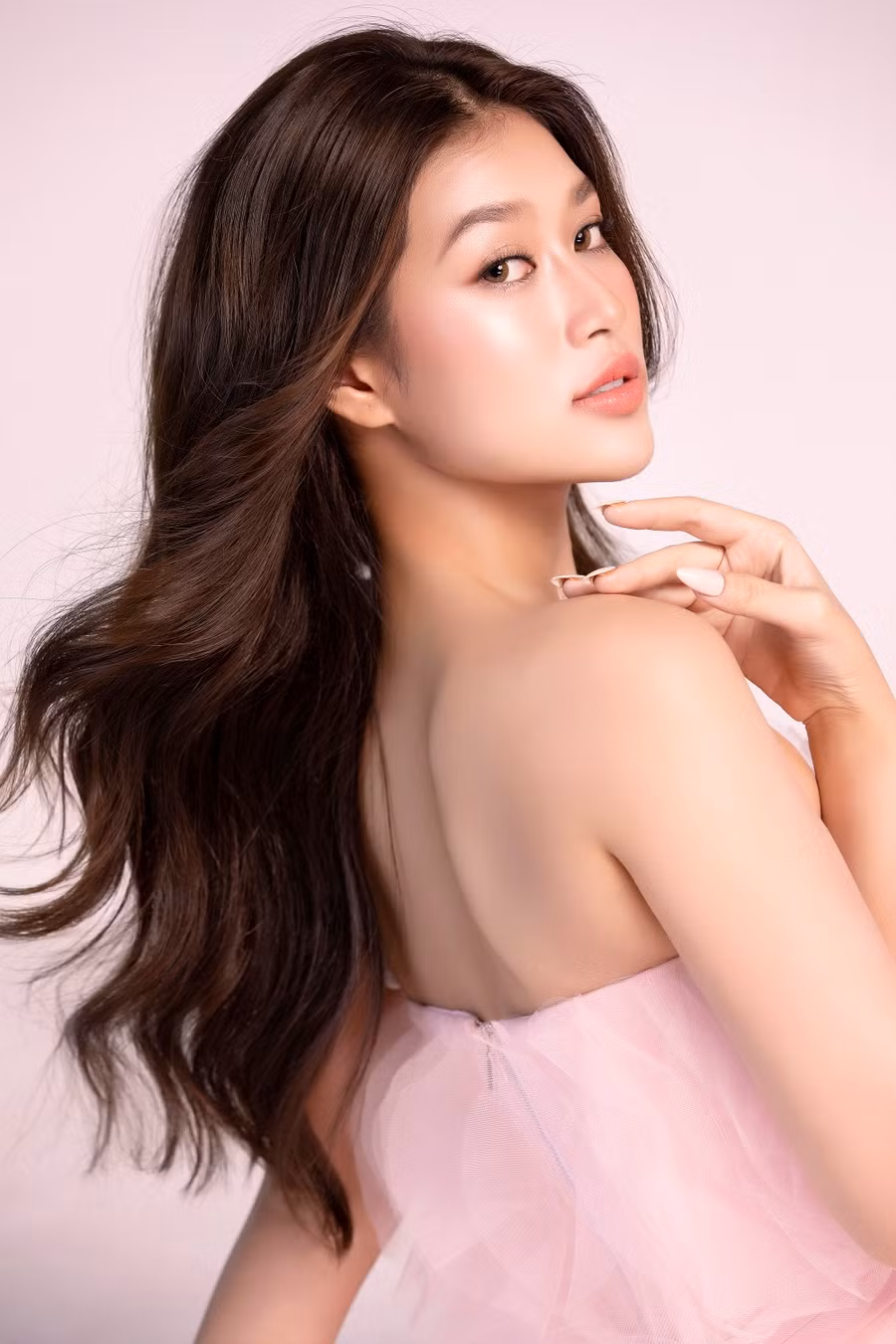 | Bộ váy màu hồng pastel nhẹ nhàng nhưng rất đỗi gợi cảm cùng phong cách trang điểm trong veo, nhan sắc 2 nàng hậu GenZ níu giữ ánh nhìn của người hâm mộ. |
