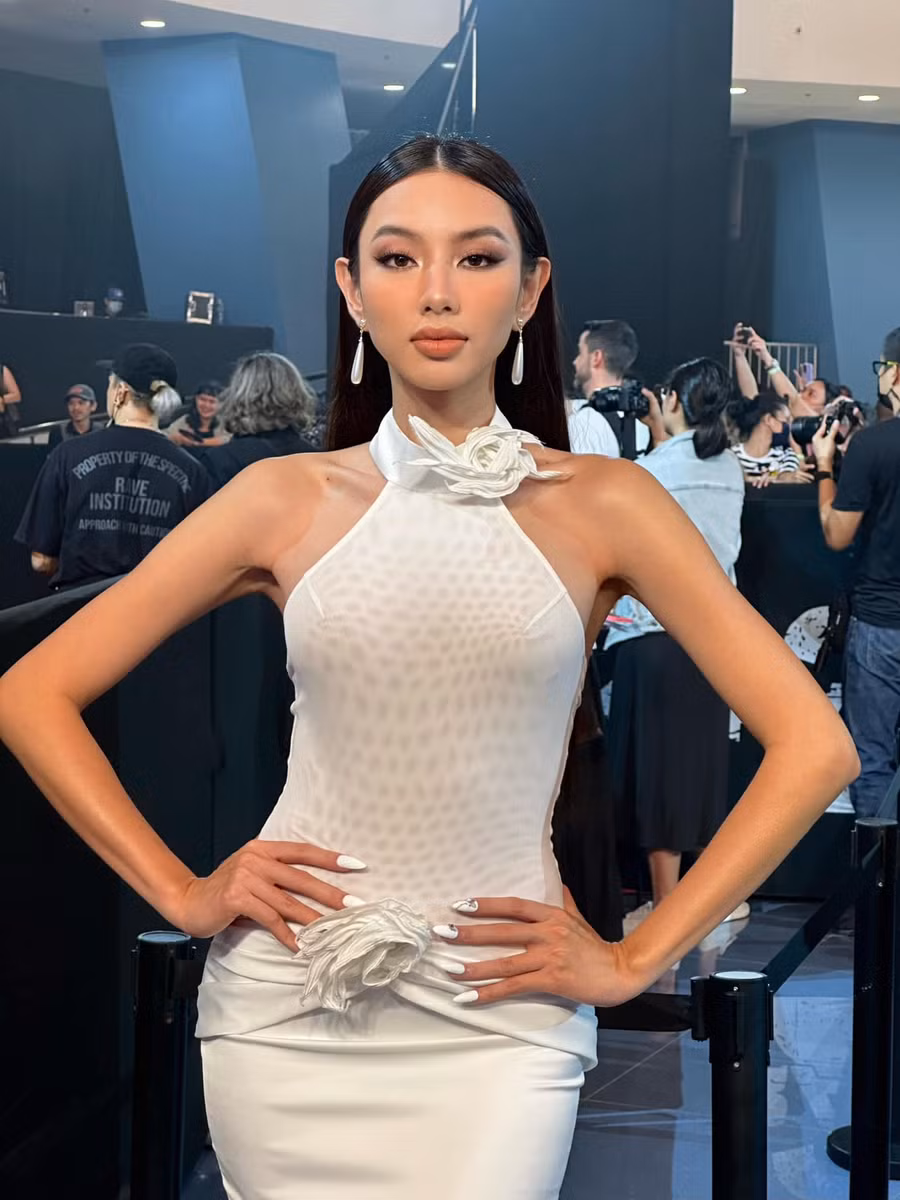 Trong khi đó, Hoa hậu Thùy Tiên cũng vô cùng nổi bật trong bộ đầm trắng với thiết kế kết hoa tinh tế, phong cách trang điểm ấn tượng đã góp phần tôn thêm vẻ đẹp và sức hút của nàng hậu.