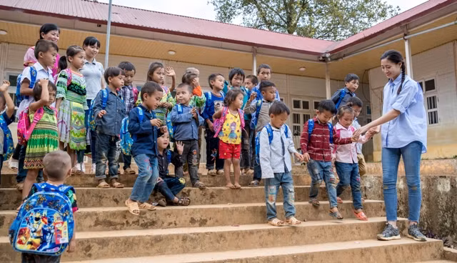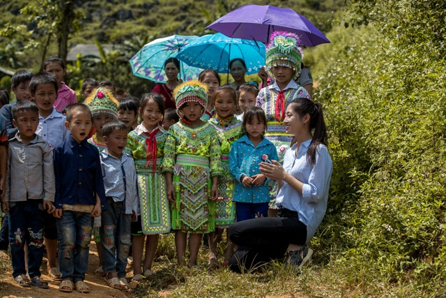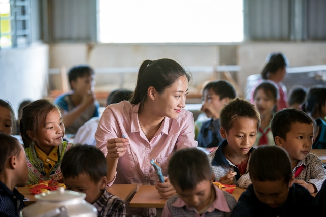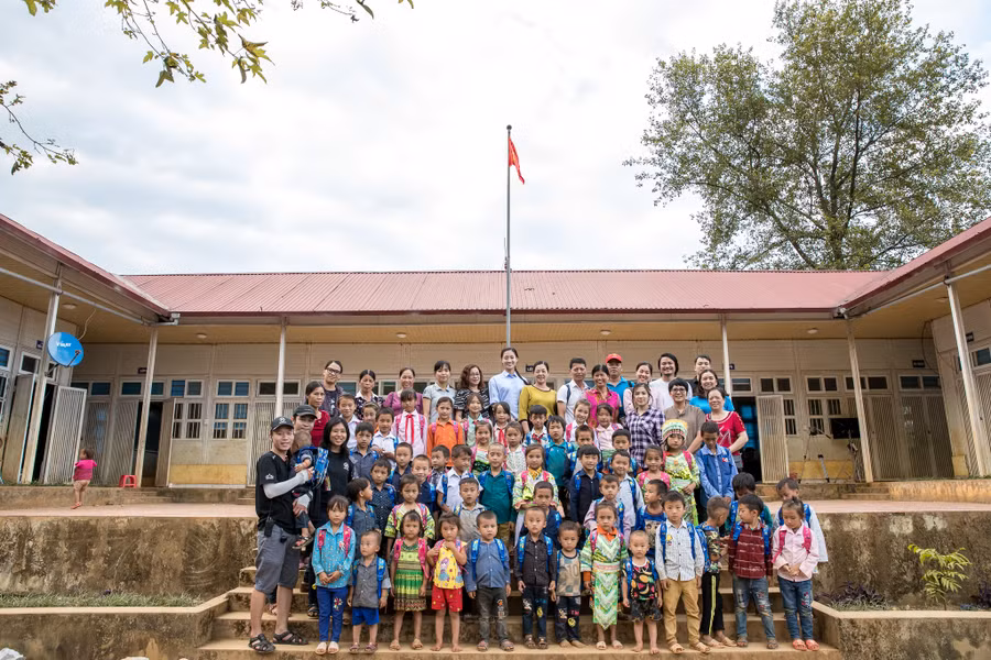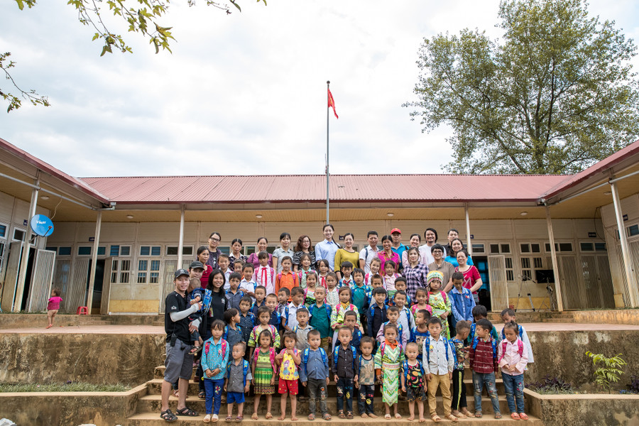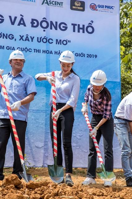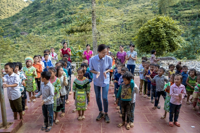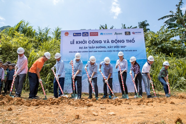 Sau buổi lễ khởi công đơn sơ, giản dị nhưng lại vô cùng đặc biệt, bởi sự vui mừng, háo hức, đầy hi vọng của học sinh và bà con dân bản, Hoa hậu Lương Thùy Linh đã nấu mì cùng ăn với các em nhỏ.