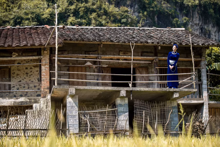 Nàng hậu gây ấn tượng khi hoá thân thành thiếu nữ người Tày xinh đẹp, mang những nét văn hoá đặc sắc của Cao Bằng nói riêng và Việt Nam nói chung giới thiệu đến bạn bè quốc tế.