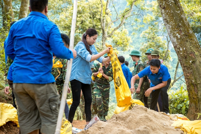 Hoa hậu Lương Thùy Linh từng chia sẻ trên trang cá nhân: “Mỗi ngày Linh và bà con, lực lượng biên phòng cùng nhau mang vác vật liệu lên Lũng Lìu, có ngày đi từ 5h sáng để tránh cái nắng, có ngày vận chuyển chuyến cuối cùng lên đến đỉnh thì trời đã tối, không nhìn rõ đường đi xuống đành ngủ lại trên núi.