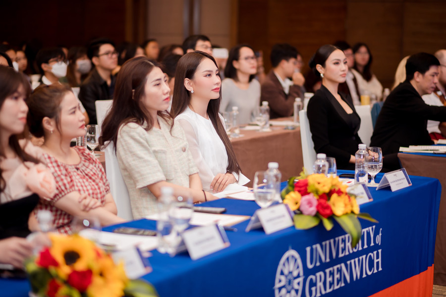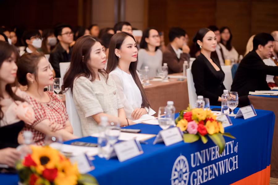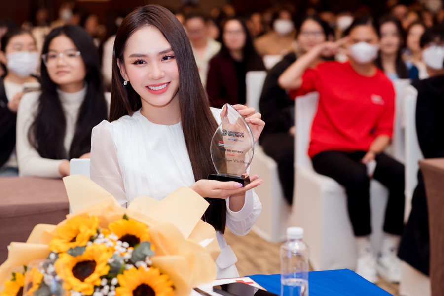Nàng hậu với phong thái nhẹ nhàng, tươi trẻ, gần gũi đã chia sẻ về chủ đề “What’s next?” (tạm dịch: Điều gì sẽ diễn ra tiếp theo?) cùng các bạn sinh viên tại đây.
