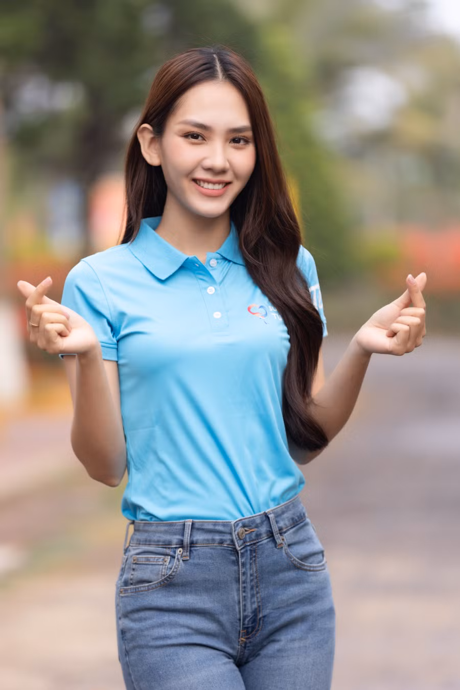 | Diện trang phục đơn giản và mặt mộc, nàng hậu đã khoe trọn nhan sắc trong sáng trong lúc lăn xả với các công tác thiện nguyện. |