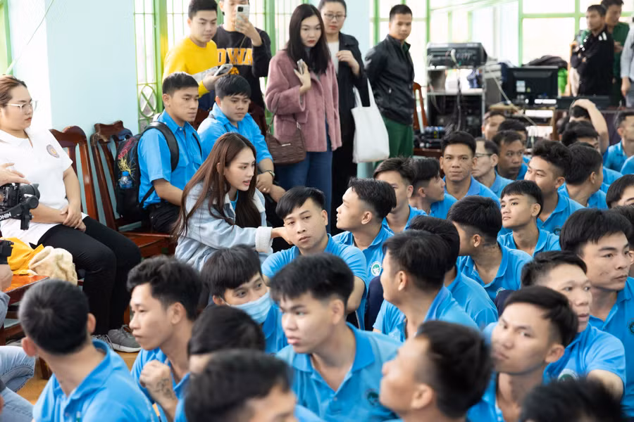 | Góp mặt tại Cơ sở Cai nghiện, mỹ nhân gốc Đồng Nai đã có cơ hội giao lưu cùng với các học viên cai nghiện tại đây, để có thể hiểu hơn về hoàn cảnh cũng như là động viên tinh thần họ. |