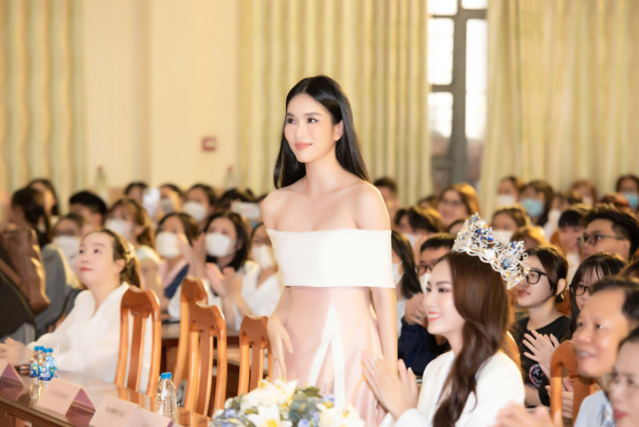 Chính vì thế ngay tại tour quảng bá tuyển sinh Hoa hậu Việt Nam, thông qua những câu chuyện của mình, nàng hậu đã truyền không ít động lực đến các cô gái đang khao khát đoạt vương miện cao quý.