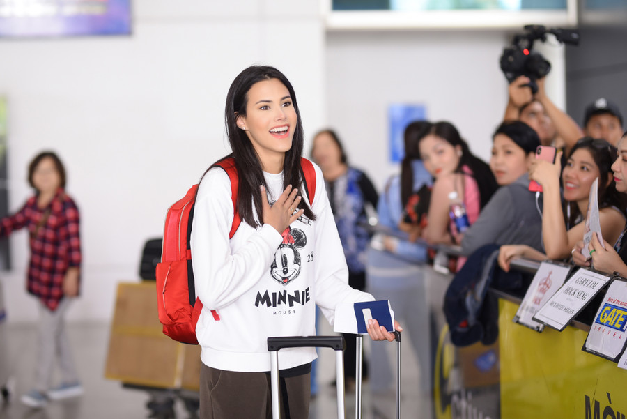 Hoa hậu Mariem đáp chuyến bay xuống sân bay Tân Sơn Nhất với nụ cười vui vẻ, khuôn mặt tươi tắn, rạng ngời dù cô đang bị bệnh và phải bay suốt 20h đồng hồ.