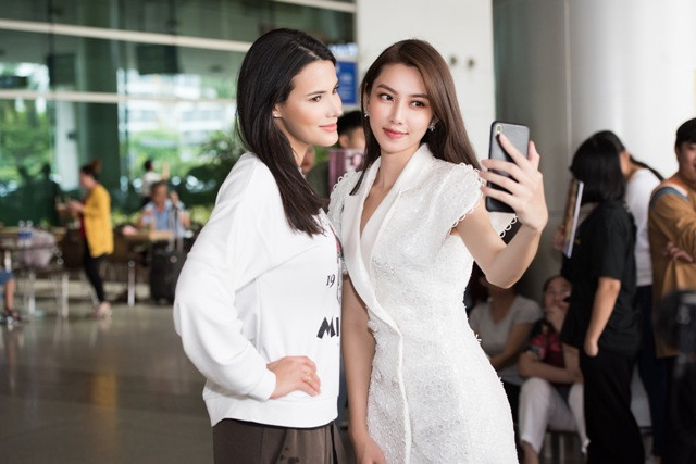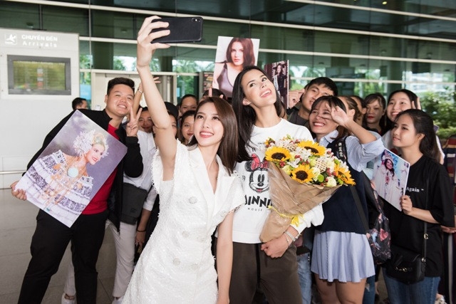 Khoảnh khắc Mariem xuất hiện khiến không khí ở sân bay dường như trở nên náo nhiệt hơn với những tiếng reo hò tên cô từ lượng lớn người hâm mộ. Cùng với sự chào đón của fan hâm mộ là sự xuất hiện của Người đẹp Thùy Tiên.