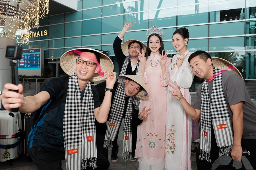 Hoa hậu Việt Nam 2022 Huỳnh Thị Thanh Thủy đã cùng Á hậu Du lịch Đà Nẵng 2022 - Võ Lê Quế Anh có mặt tại sân bay để chào đón Sở du lịch Nhật Bản gồm đại diện thành phố Kofu, Yamanashi, Fuefuki, Koshu cùng Tổng giám đốc đài truyền hình Yamanashi và các bộ phận phát triển kinh doanh quốc tế đến thăm Đà Nẵng, Việt Nam.