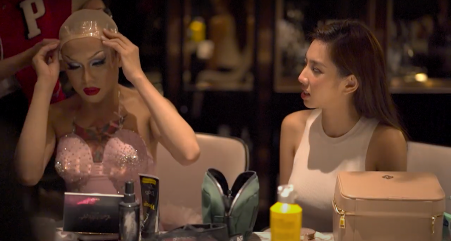 Đáng nói, điểm thú vị ở series này chính là việc Thùy Tiên không chỉ trò chuyện, tìm hiểu mà còn trải nghiệm công việc của nhân vật. Và tại đây, khán giả được chứng kiến những thước phim chân thật khi nàng hậu quốc tế tập hóa thân thành một drag queen.