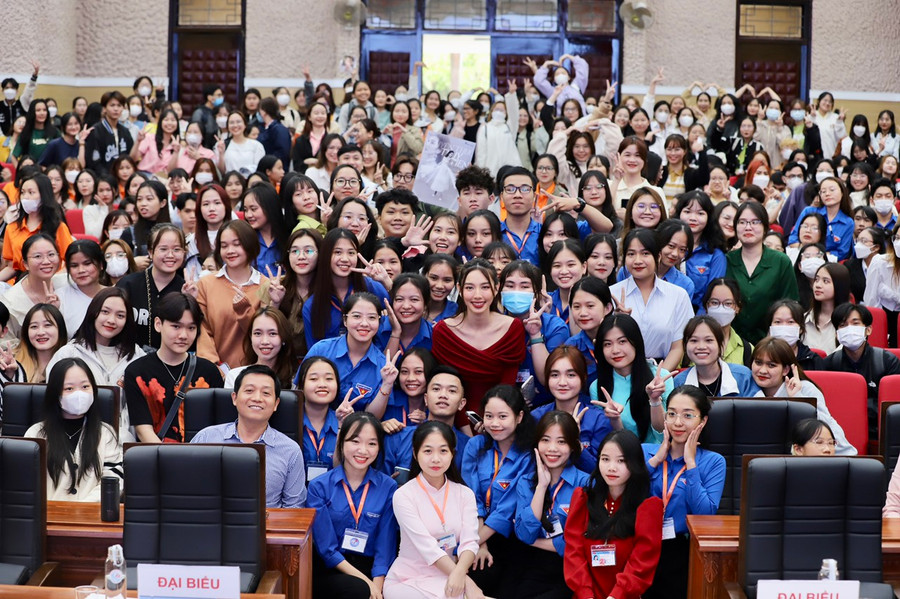 Hoa hậu Thùy Tiên cũng mong rằng, những chia sẻ của cô sẽ phần nào bổ ích cho hành trình phát triển của các bạn học sinh, sinh viên tại đây.