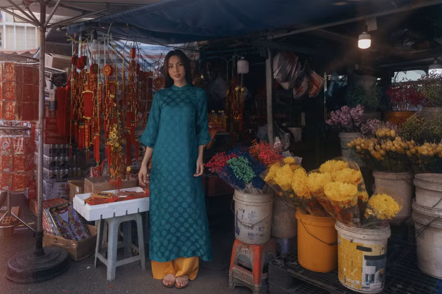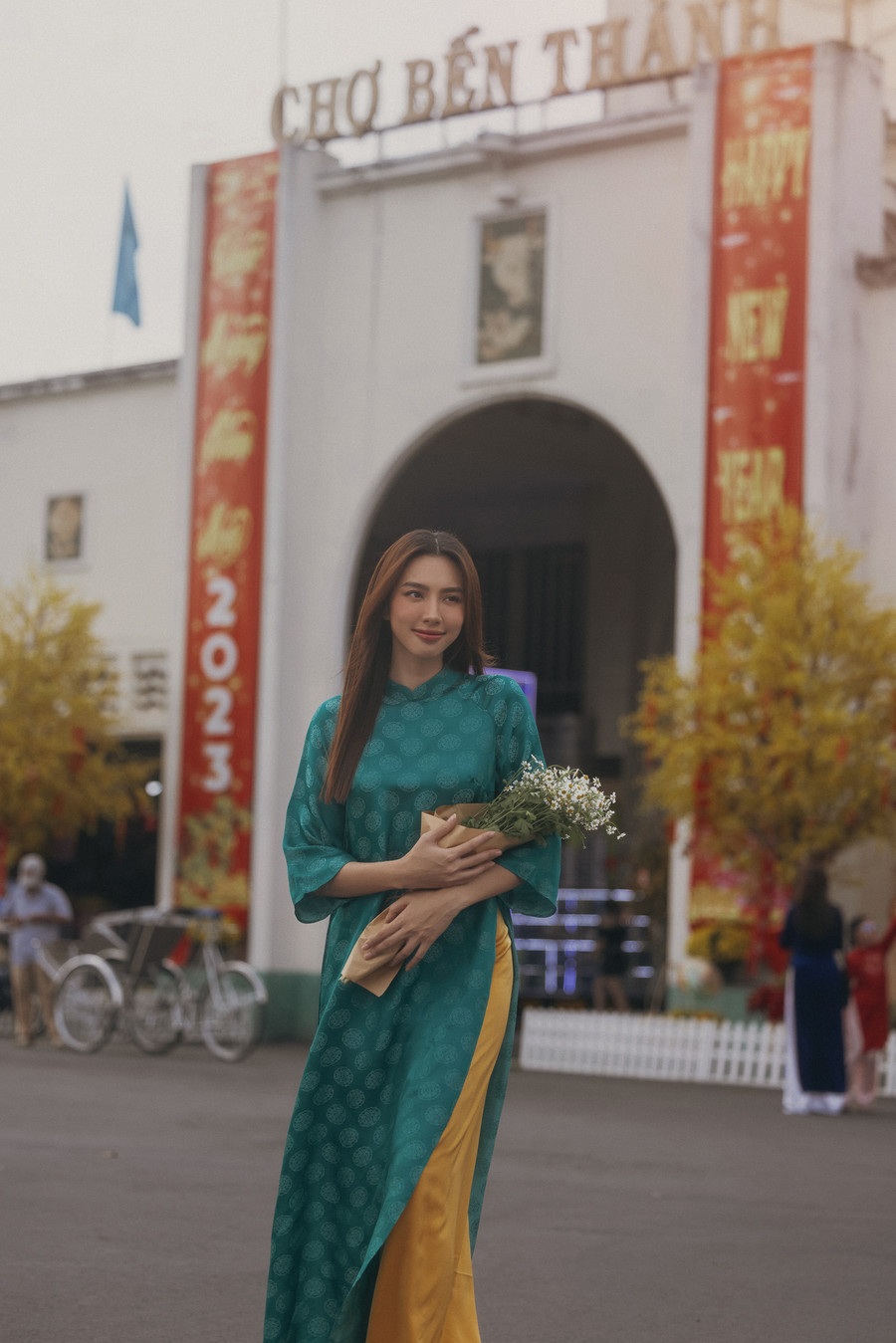 Bộ ảnh Tết của người đẹp 9x mang hơi hướng hoài cổ, được thực hiện tại Chợ Bến Thành, Chợ Cũ - những địa điểm được nhiều người ghé thăm chụp ảnh bởi nét cổ kính lâu đời.