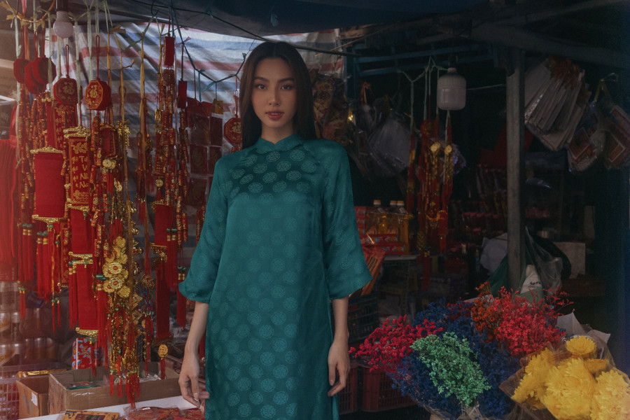 Khán giả vẫn thường nhớ đến Thùy Tiên như một nàng hậu trẻ trung, hiện đại và đầy quyến rũ. Dẫu vậy, cô vẫn đẹp một cách rất riêng khi khoác lên mình bộ áo truyền thống của Việt Nam. Đó cũng là lý do người đẹp chọn trang phục này xuất hiện trong bộ ảnh khép lại năm cũ, đón chào năm mới rực rỡ.