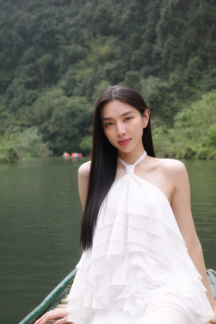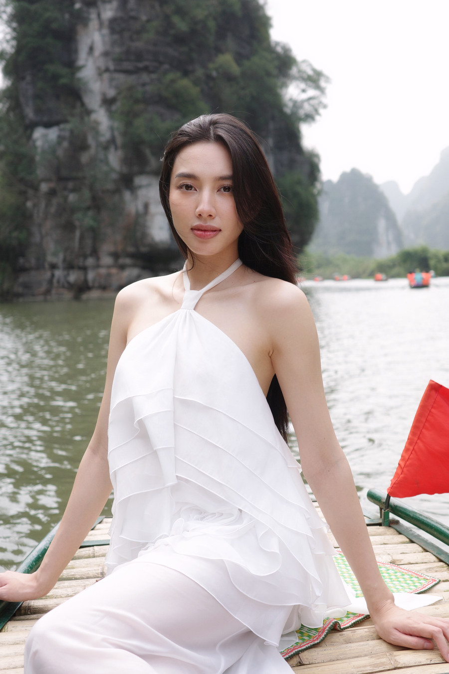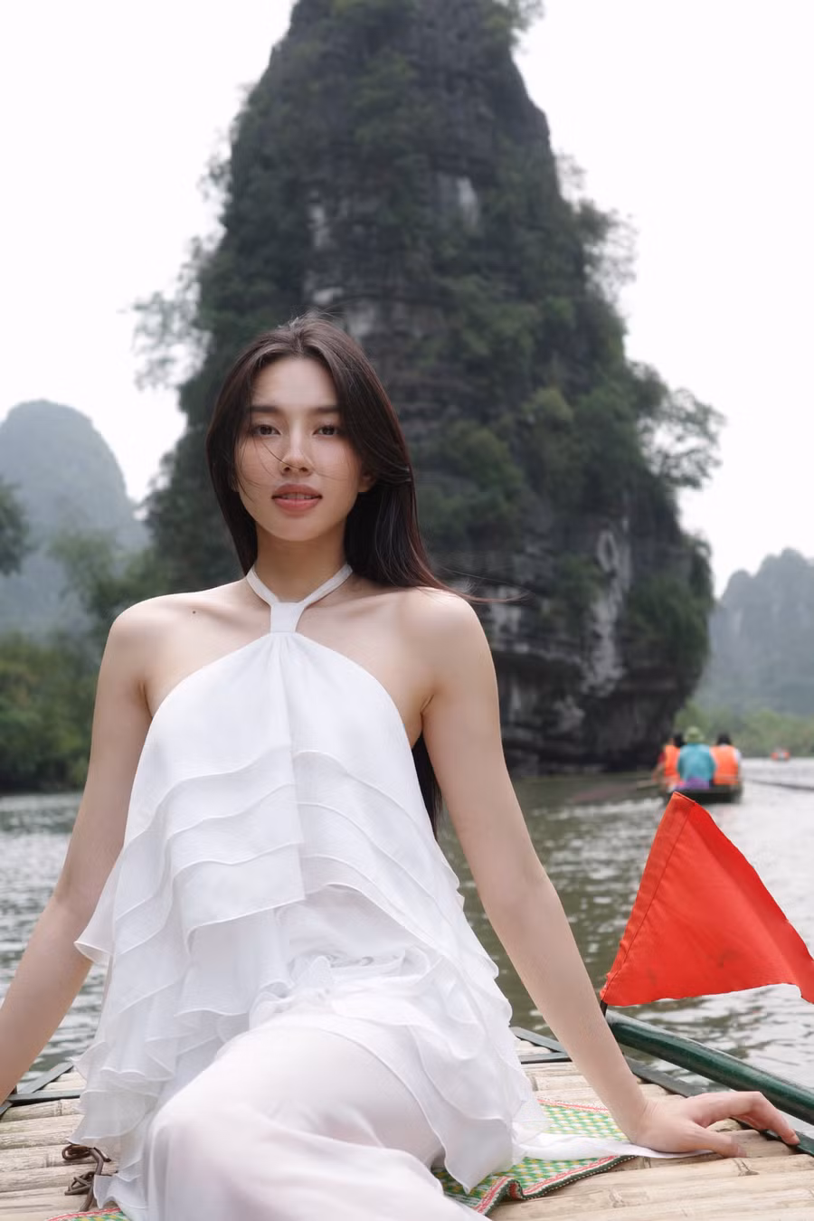| Hoa hậu Thuỳ Tiên khoe visual cực đỉnh, nhan sắc trong veo tại Tràng An sau chuyến từ thiện. |