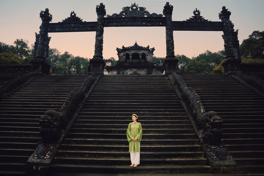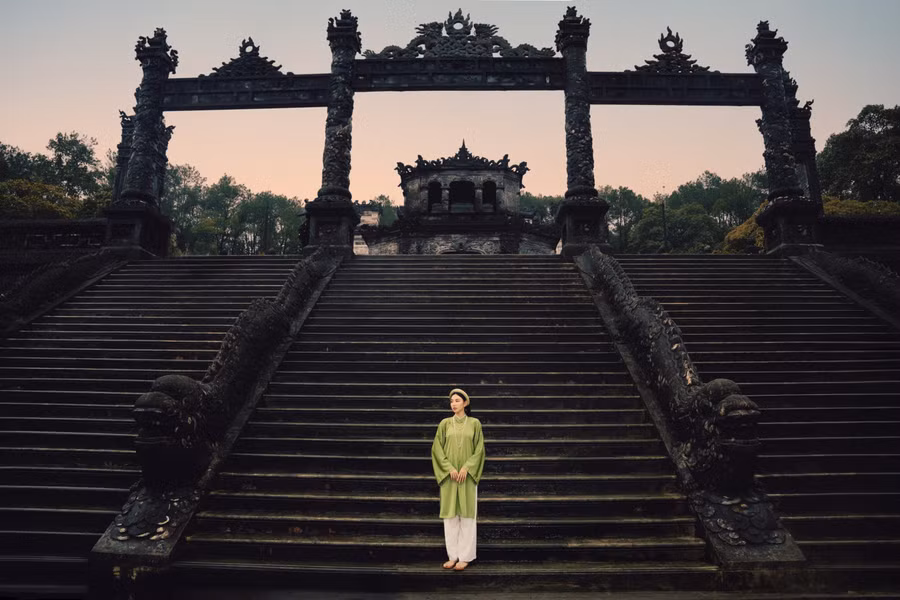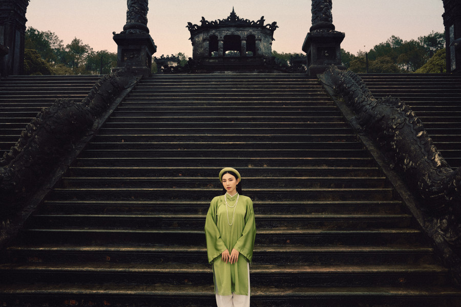 Trong Ngày phụ nữ Việt Nam 20/10, Hoa hậu Thùy Tiên đăng tải bộ ảnh cực ấn tượng với bộ Việt phục được thực hiện tại Lăng Khải Định khi có chuyến công tác tại thành phố Huế.