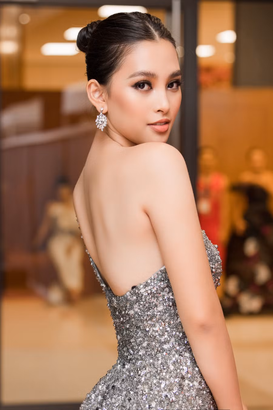 Hoa hậu Tiểu Vy tiếp tục chứng minh đẳng cấp của mình khi duy trì thần thái đầy cuốn hút và vẻ đẹp quyến rũ khó cưỡng với chiếc đầm trễ vai đính kết lấp lánh của NTK Hoàng Hải. Cũng chính thiết kế này đã giúp cô “ẵm” cho mình giải thưởng best dress trong ngày đầu của Tuần lễ thời trang quốc tế Việt Nam 2019 .