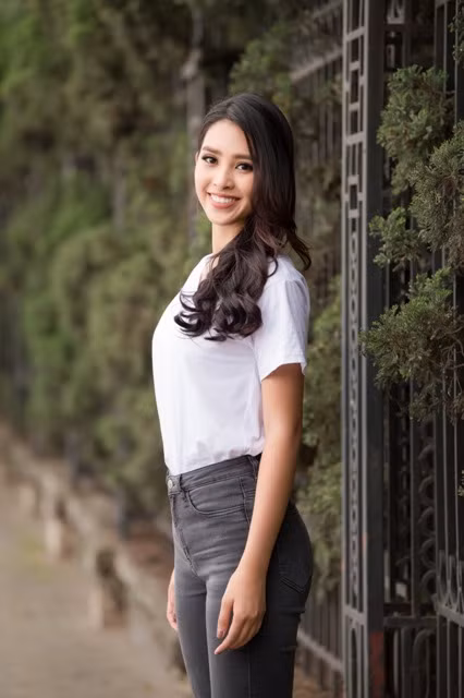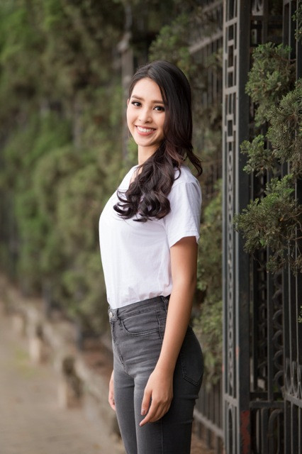 Chọn trang phục đơn giản, Tiểu Vy vẫn gây chú ý bởi nhan sắc ngày càng thăng hạng của mình và sự tràn đầy nhựa sống của thiếu nữ gần đôi mươi.