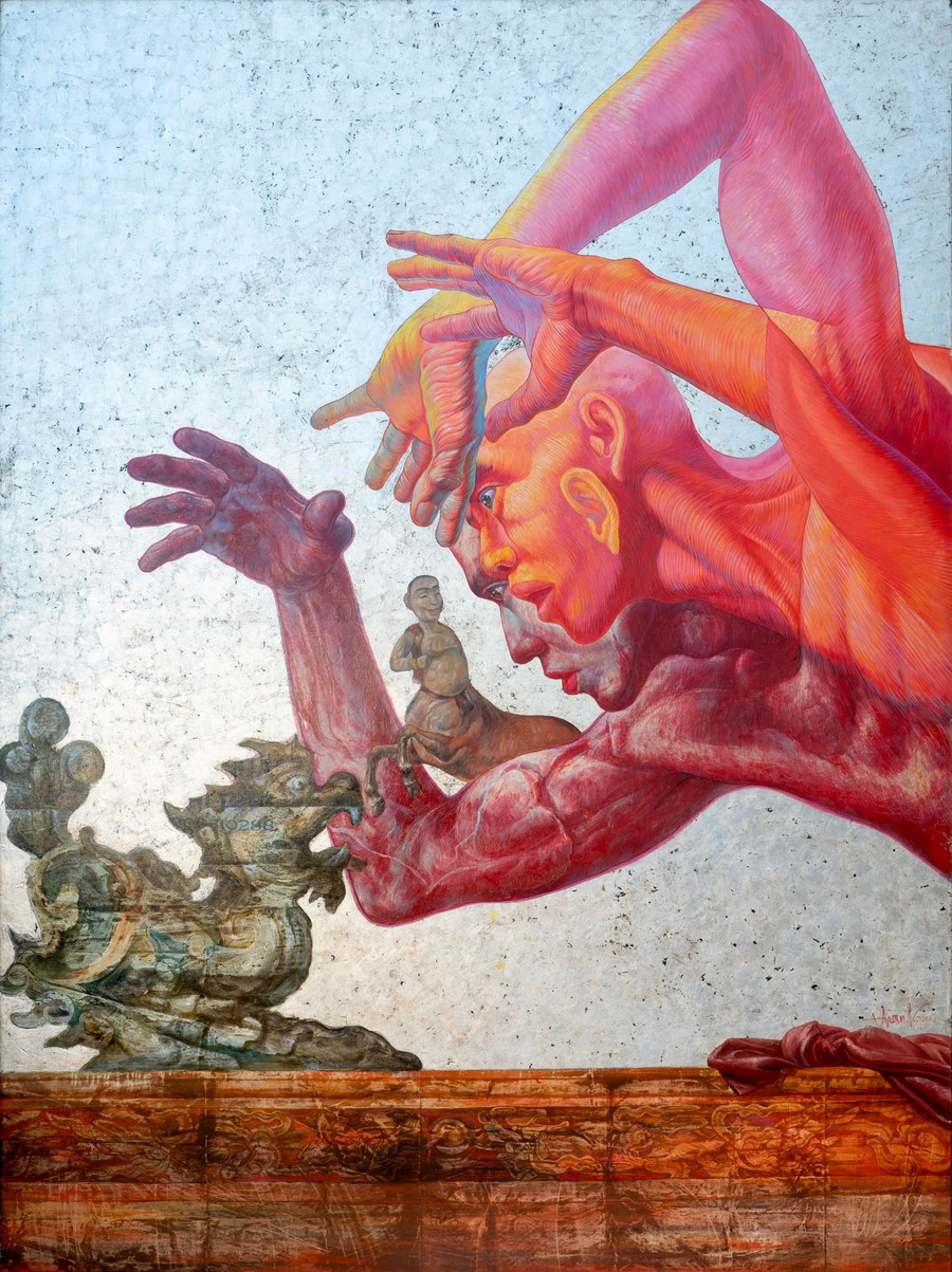 Hơn 30 bức tranh sơn dầu là hành trình nghệ sĩ đi tìm đáp án cho câu hỏi về lịch sử, về sự phát triển của xã hội và sự giao thoa của đời sống - khoa học - nghệ thuật.