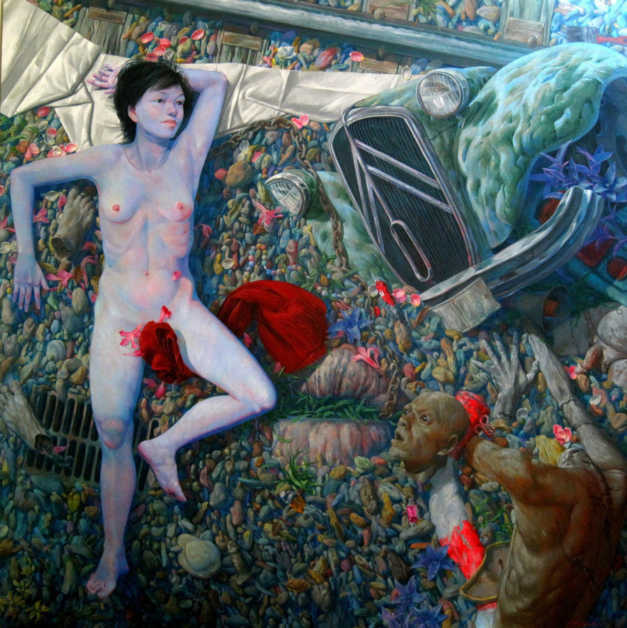 Không gọi phong cách của mình là cực thực hay siêu thực, Trần Trung Thành nén những suy tư và cảm nhận về cuộc đời thành những mật mã, những “dòng code” trong mỗi bức tranh.