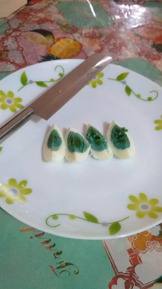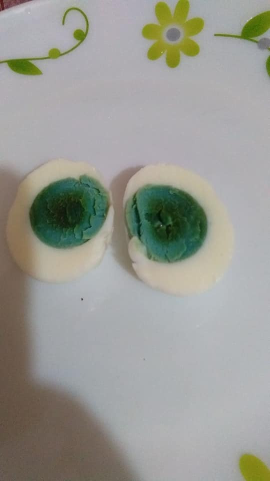 Quả trứng có phần bên trong màu xanh kỳ lạ.