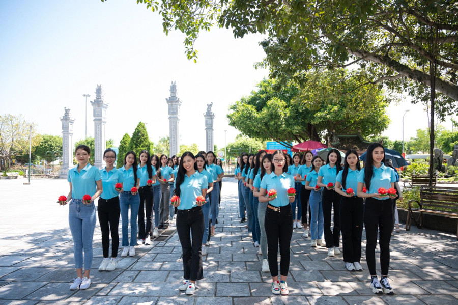 Có mặt tại ngôi đền có hơn 700 năm tuổi, là nơi “gặp gỡ” giữa núi non, rừng già và biển cả, các thí sinh Hoa hậu Biển Đảo Việt Nam mặc đồng phục năng động nhưng không kém phần thanh lịch tại chốn linh thiêng.