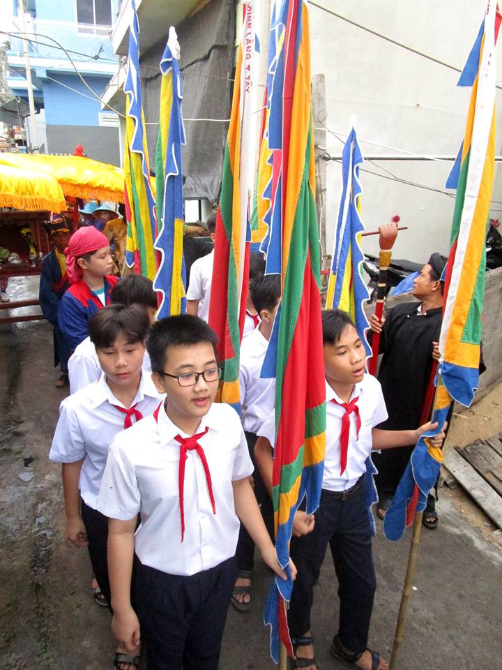 Các em học sinh được các vị chức sắc của làng chỉ bảo chi tiết để biết được ý nghĩa của lễ hội không chỉ là hoạt động tín ngưỡng đơn thuần của ngư dân vùng biển mà còn là một hình thức sinh hoạt văn hóa cộng đồng đặc biệt. Là dịp để bà con động viên nhau bám biển, giúp người dân địa phương gần gũi nhau xây dựng nếp sống văn hóa ý nghĩa và lành mạnh.