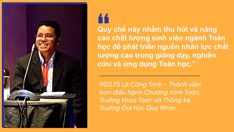 Theo PGS.TS Lê Minh Hà - Giám đốc điều hành Viện Nghiên cứu cao cấp về Toán, Quy chế xét, cấp học bổng cho sinh viên hệ đào tạo chính quy ngành Toán học áp dụng đối với sinh viên theo học các chương trình đào tạo hệ chính quy ở trình độ đại học thuộc ngành Toán học (mã ngành: 74601) theo quy định tại Thông tư số 09/2022/TT-BGDĐT của Bộ trưởng Bộ GD&ĐT quy định Danh mục thống kê ngành đào tạo, bao gồm các ngành: Toán học, Khoa học tính toán, Khoa học dữ liệu, Toán ứng dụng, Toán cơ, Toán tin.