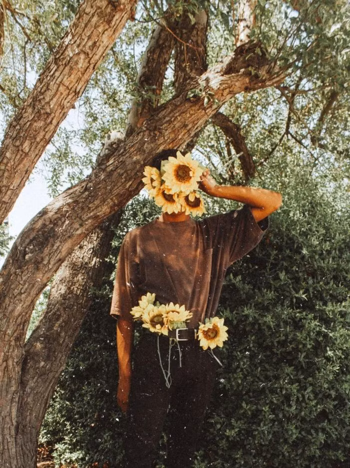 Tuy nhiên, điểm khó là bạn phải bố cục làm sao cho bông hoa không quá to, cũng không quá nhỏ mà cận đối với khuôn mặt. Nếu đặt hoa hướng dương ở vị trí thiếu tinh tế, tấm hình tưởng chừng rất "nghệ" lại hóa ra bị phô. Ảnh: Tumblr.