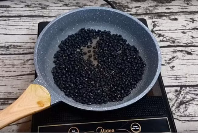 Bước 2: Bạn đổ đậu đen vào chảo, rang nóng đến khi chúng dậy mùi thơm, chú ý đảo đều tay tránh bị cháy. Lúc đầu rang lửa lớn rồi từ từ hạ nhỏ lại, được khoảng 10 phút là đậu chín (không nên rang chín già) thì bạn tắt bếp. Nếu bạn muốn làm 1 mẻ to thì tăng số lượng đậu đen lên, bảo quản trong hộp kín rồi dùng dần.