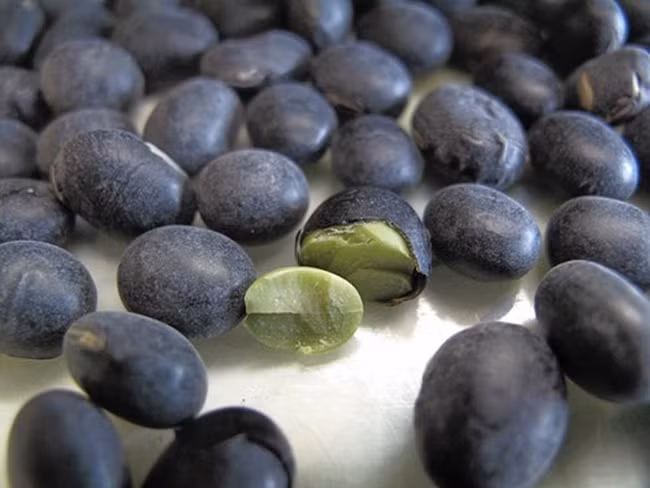 Bạn chỉ cần lấy dao cắt đôi hạt đậu đen nhìn bên trong chúng, màu xanh hoặc trắng rất rõ ràng. Loại đậu đen lòng xanh có tác dụng chữa bệnh cao hơn.