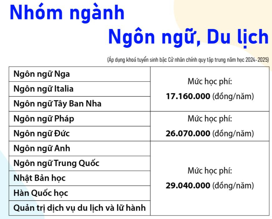 Riêng ngành Việt Nam học dành cho người nước ngoài, mức học phí 66 triệu đồng/năm học.