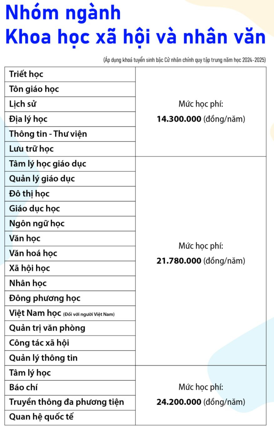 | Học phí Trường Đại học Khoa học Xã hội và Nhân văn. |