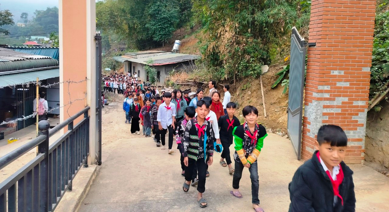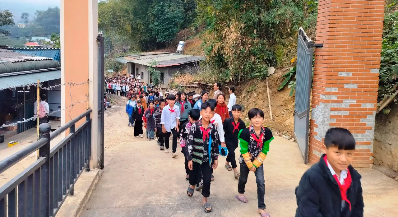 | Học sinh Trường PTDTBT - THCS Trung Lý (Mường Lát, Thanh Hóa) trở lại trường học. Ảnh:DT |