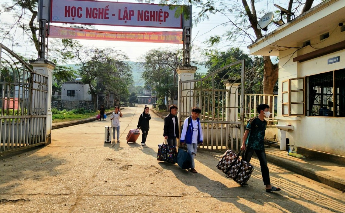 | Học sinh Trường Trung cấp nghề miền núi Thanh Hóa (huyện Ngọc Lặc, Thanh Hóa) trở lại trường sau kỳ nghỉ Tết. Ảnh: NH |
