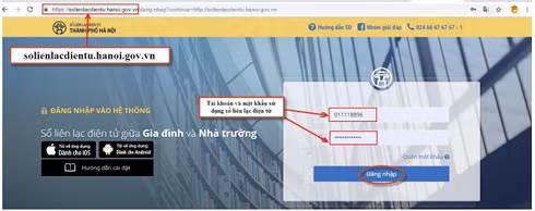 HS/CMHS truy cập vào trang https://solienlacdientu.hanoi.gov.vn (nếu dùng máy tính) hoặc phần mềm PINO (nếu dùng thiết bị di động thông minh) đăng nhập bằng tài khoản và mật khẩu được cấp.