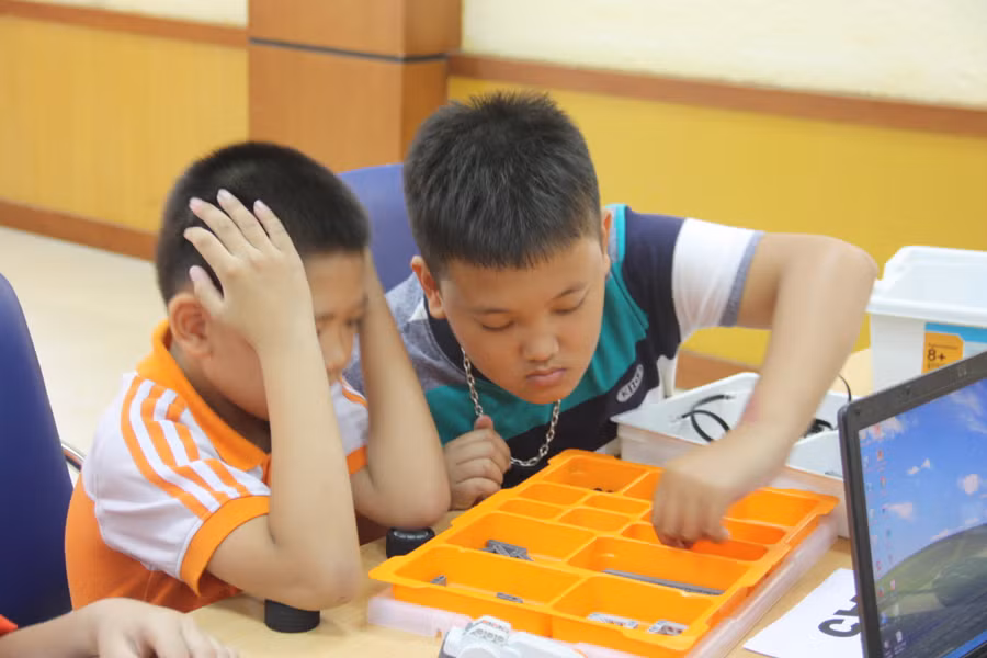 Trong thời gian này, các học sinh được trường lựa chọn tham gia đội tuyển sẽ được làm quen với môn học Robotics và bộ Lego chuyên dành cho lắp ráp rô bốt. Các em cũng sẽ được học cách lắp rô bốt biểu tượng cho rô bốt xử lý rác thải với những bộ phận do mình tự sáng tạo.