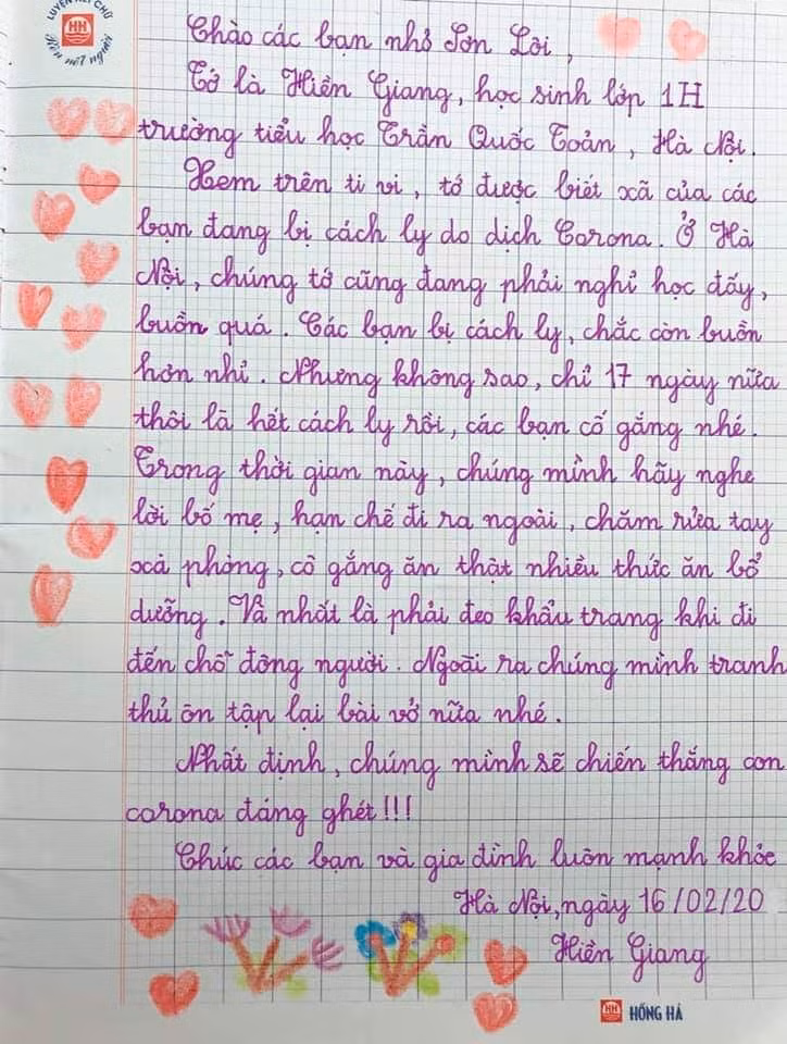 Những nét chữ, những tranh vẽ chứa chan tình cảm yêu thương của các bạn nhỏ như một sức mạnh tinh thần lớn lao tiếp thêm cho các bạn nhỏ và người dân Sơn Lôi, với mong muốn mọi người luôn mạnh khoẻ và bình an, sớm vượt qua khó khăn trong giai đoạn này.