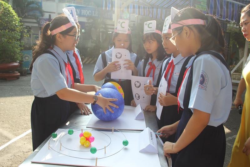 Qua tiết học, các em lớp 6 bước đầu làm quen với khái niệm Nguyên tử và bảng tuần hoàn hóa học và được tự làm các sản phẩm theo định hướng STEM. Tiết học có sự tham dự của rất đông thầy cô giáo đang làm công tác quản lý, giảng dạy tại nhiều trường THCS, THPT trên địa bàn TP.HCM tham dự.
