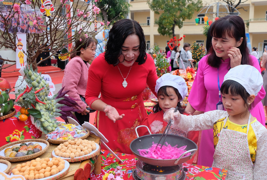 “Việc để các em tự tay thực hiện được những món ăn truyền thống đó sẽ giúp các em nhớ lâu hơn, hiểu rõ hơn về nét đẹp văn hóa trong ngày Tết cổ truyền. Đó là mục đích mà nhà trường muốn truyền tải đến học sinh. Để khi nhìn thấy những sản phẩm của ngày Tết, học sinh sẽ hiểu hết ý nghĩa của ngày Tết và những điều may mắn, kỳ vọng của một năm mới”, Hiệu trưởng Vũ Thị Thuý Hà chia sẻ.