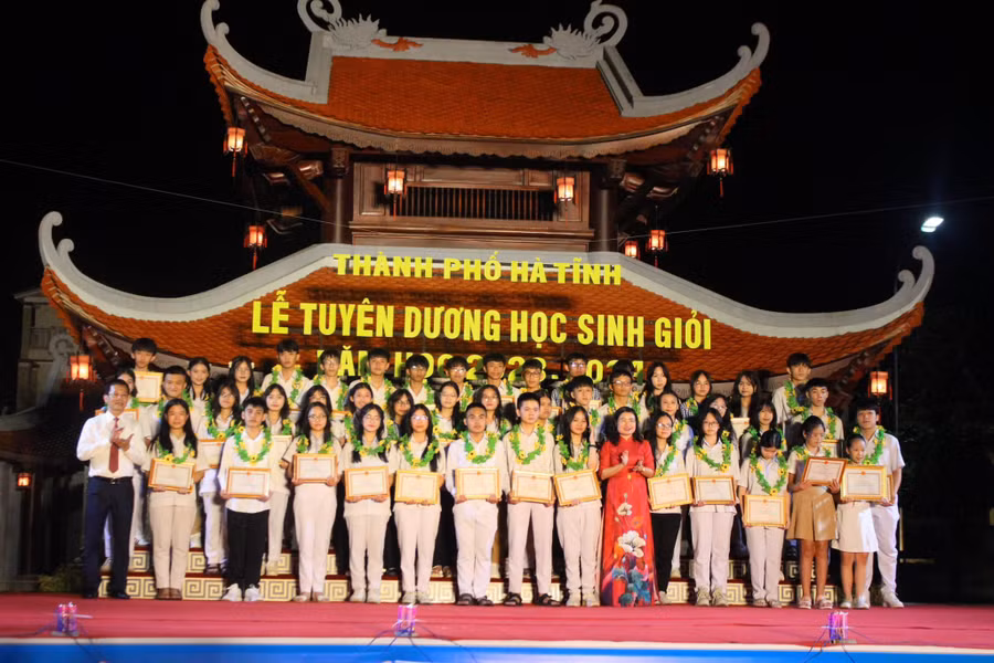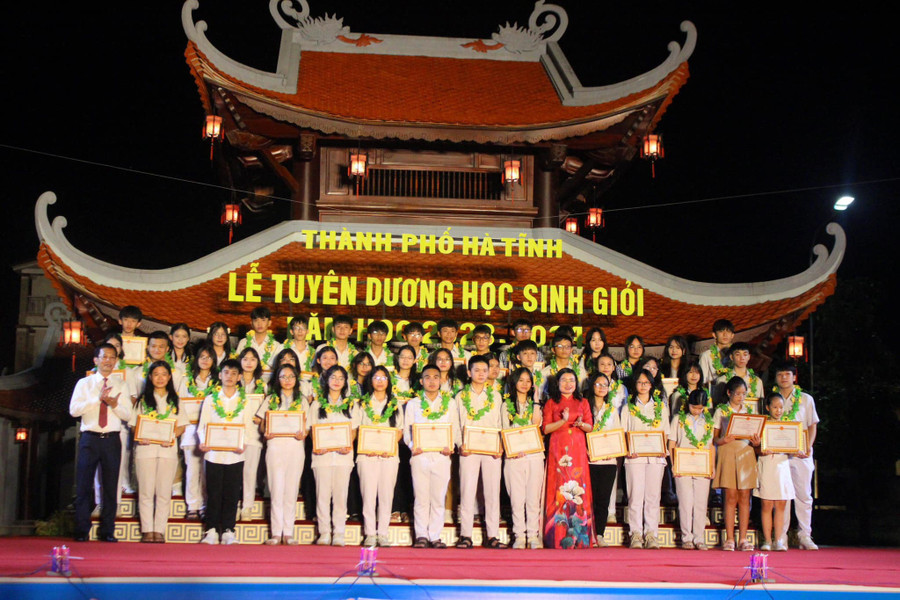 Tối 1/6, tại Văn Miếu Hà Tĩnh, UBND thành phố Hà Tĩnh tổ chức lễ tuyên dương, khen thưởng học sinh giỏi, giáo viên giỏi tiêu biểu năm học 2023 - 2024.
