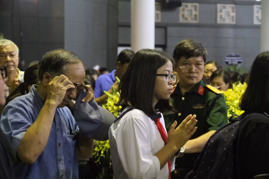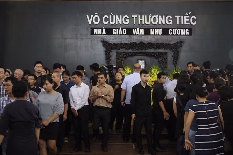 Các thế hệ học sinh trường Lương Thế Vinh không hẹn mà gặp đã cùng nhau tập trung tại nhà tang lễ, xếp hàng chờ đến lượt nhìn người thầy lần cuối.
