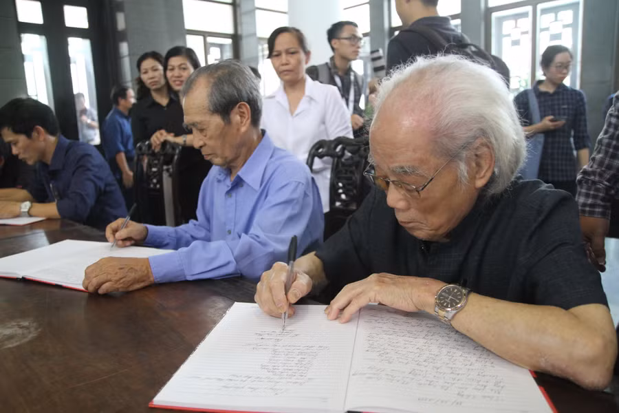 Rất đông đồng nghiệp, cựu học sinh và học sinh trường Lương Thế Vinh các thế hệ đã đến tiễn đưa nhà giáo, người hiệu trưởng mẫu mực mà họ từng yêu mến.