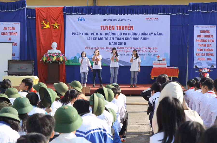 Sáng nay (9/11) tại Trường THPT Ngân Sơn, tỉnh Bắc Kạn, Bộ GD&ĐT phối hợp với Uỷ ban ATGT quốc gia, Công ty Honda Việt Nam tổ chức chương trình tập huấn pháp luật về giao thông đường bộ và kỹ năng lái xe mô tô an toàn cho học sinh THPT năm 2019.