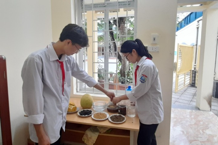 Nhận thấy nước rửa bát hóa học khiến da tay bị khô, bong tróc, nhóm học sinh ở Bình Phước đã nghiên cứu, sáng tạo nước rửa bát sinh học từ quả bồ kết và vỏ bưởi, cam, chanh, quýt, quế.