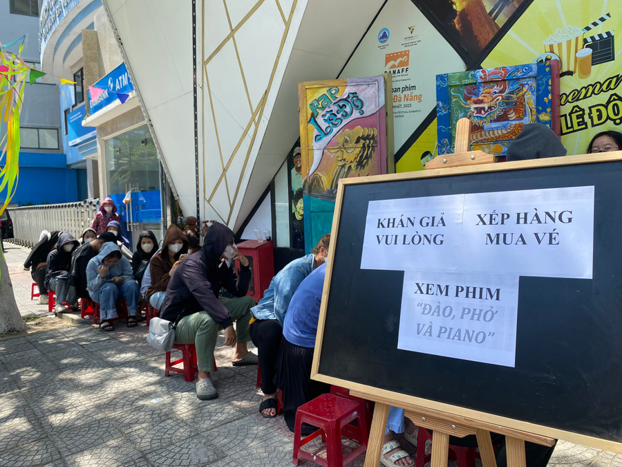 Xếp hàng từ 8h sáng để đợi vào mua vé, một sinh viên Trường Đại học Đông Á cho hay, ngay sau khi biết rạp chiếu phim Đào, Phở và Piano, em đã cùng nhóm bạn đến từ 8h nhưng hơn 3 tiếng vẫn chưa vào mua được vì quá đông. “Nếu xếp hàng đợi đến chiều mà có vé xem thì tụi em cũng đứng đợi được”, sinh viên này nói.