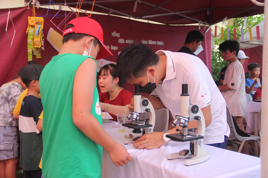 | Gian hàng Khoa học và Đời sống luôn thu hút rất đông các bạn nhỏ đến tham quan và trải nghiệm. |