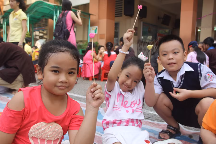 Học sinh Duy Khoa chia sẻ: “Con đến từ rất sớm, con rất muốn được trải nghiệm với trò đi cà kheo và đi cầu khỉ, vì con chỉ được thấy ở trên tivi chứ chưa được chơi bao giờ. Con nghĩ để chơi tốt mình phải thật là cẩn thận và khéo léo". Còn với Gia Thịnh, học sinh khối 1 lại rất thích trò chơi làm tò he vì theo cậu bé, “con thấy nó rất lạ và đẹp”.
