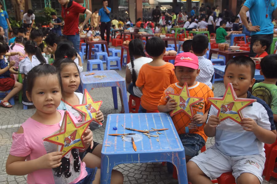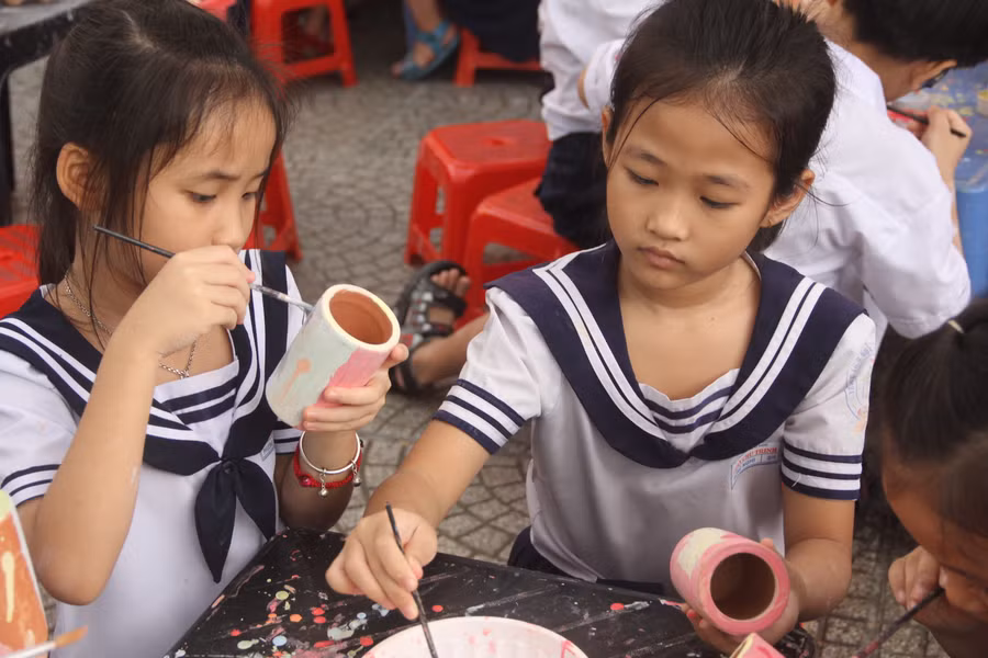 Dù tay, chân có chút lấm lem sau khi làm gốm hay những con cào cào gấp chưa hoàn chỉnh, đi cà kheo, cầu khỉ vẫn chưa thành thạo... nhưng các bạn nhỏ tỏ ra rất vui, rất thích thú và hào hứng khi được trải nghiệm các hoạt động này.