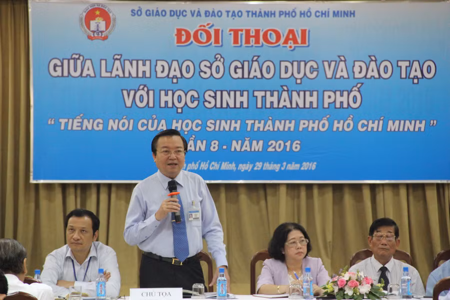 Mở đầu buổi đối thoại, Giám đốc Sở GD&ĐT TPHCM Lê Hồng Sơn chân tình trao đổi: Các em hãy coi các cô chú lãnh đạo, các thầy cô ở đây như những người bạn, có trăn trở gì, suy nghĩ bộc bạch gì cứ nói ra để cùng nhau giải quyết. Và có thể trong những trăn trở của các em, lãnh đạo ngành sẽ rút ra được những điều mới mẻ cũng như thiếu sót.