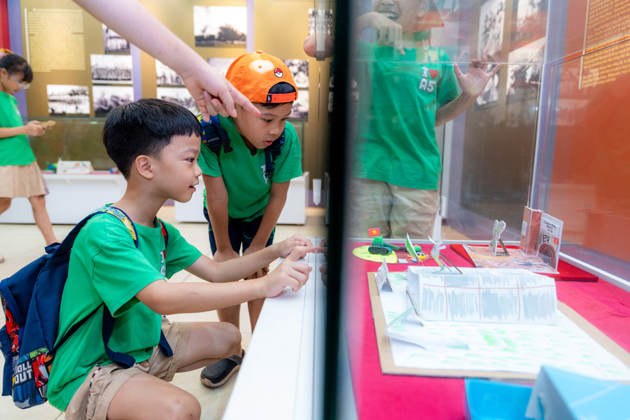 | Học sinh Trường Tiểu học Alpha Schools – CGD trải nghiệm lịch sử tại triển lãm. |